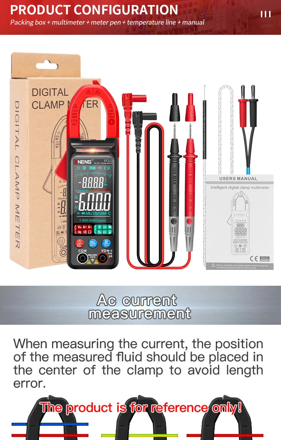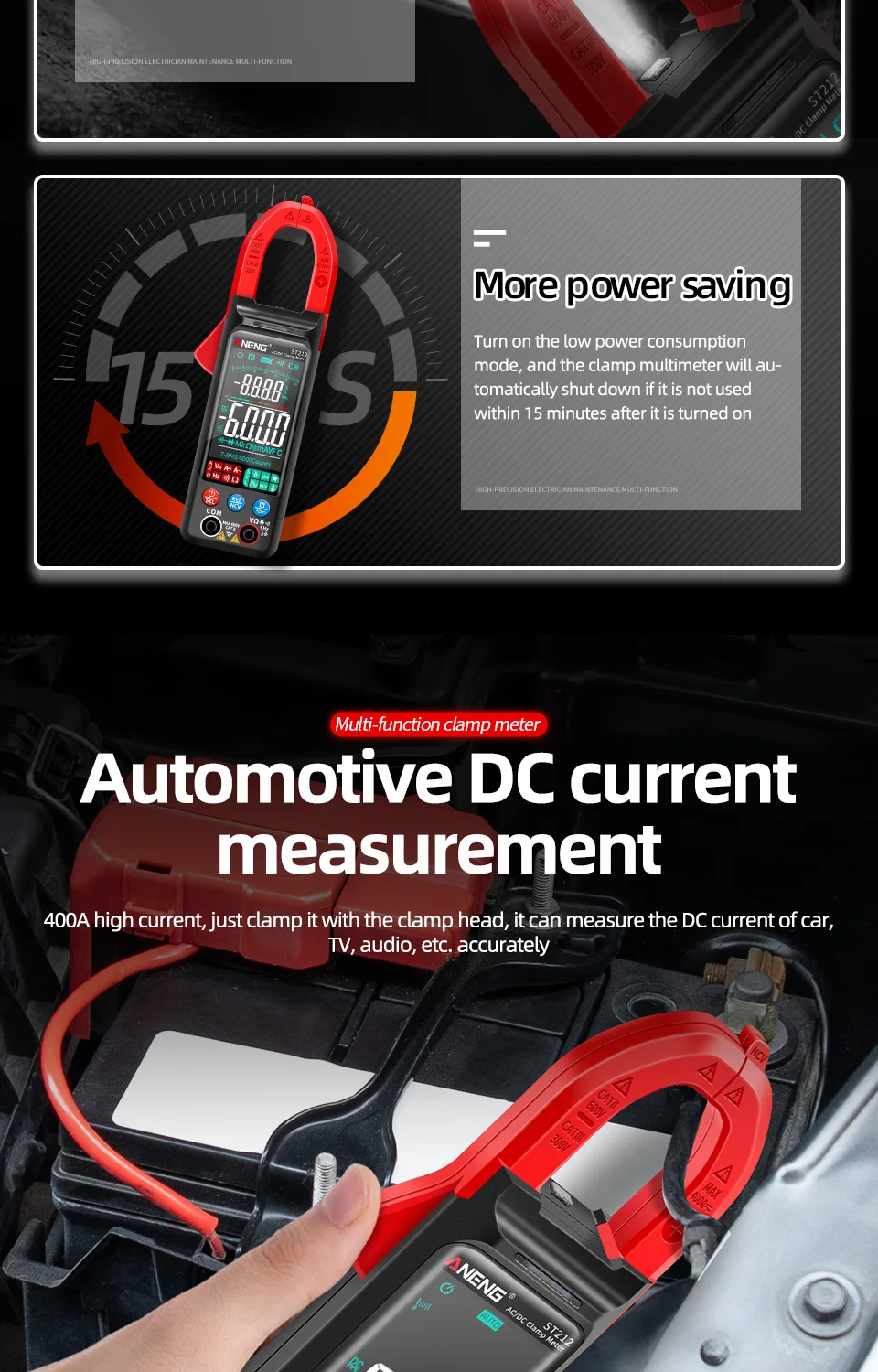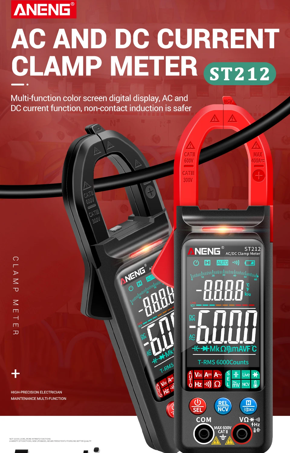 ANENG ST212 DC/AC Current Digital Clamp Meter 6000 Counts 400A Multimeter Large Color Screen Tester