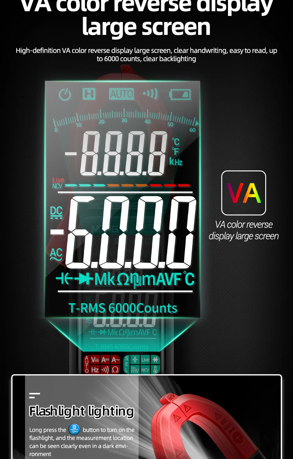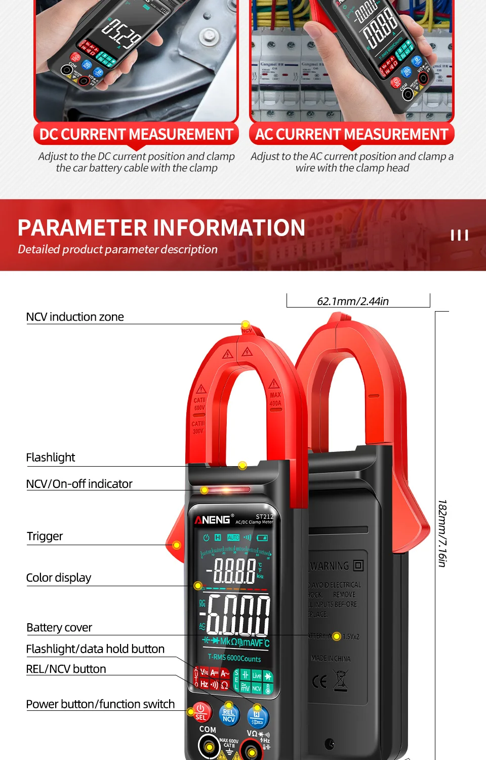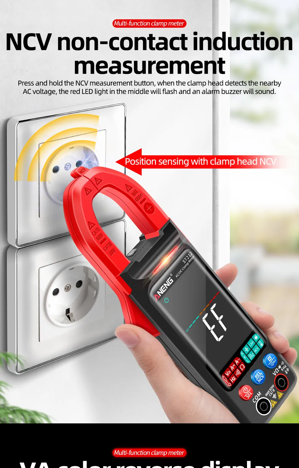 ANENG ST212 DC/AC Current Digital Clamp Meter 6000 Counts 400A Multimeter Large Color Screen Tester
