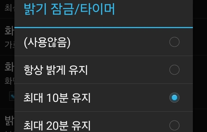아무리 개별 앱에서 "항상 밝게 유지"를 지정하더라도,
