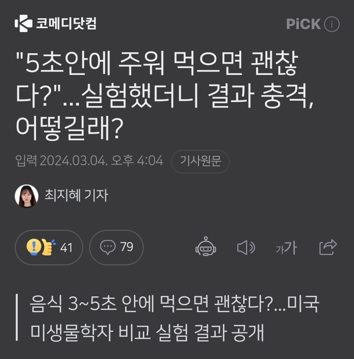 "5초안에 주워 먹으면 괜찮다?"...실험했더니 결과 충격, 어떻길래?