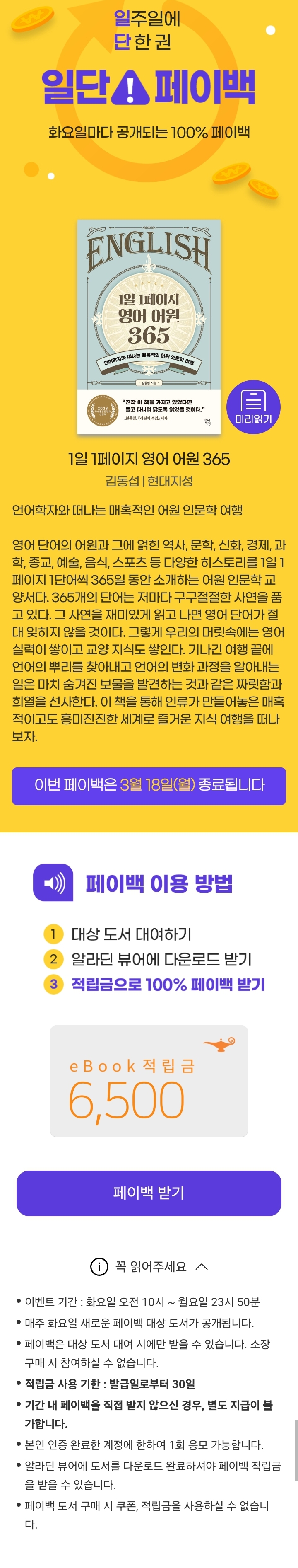 매주 화요일 100% 돌려드려요, 일단 페이백 1일 1페이지 영어 어원 365