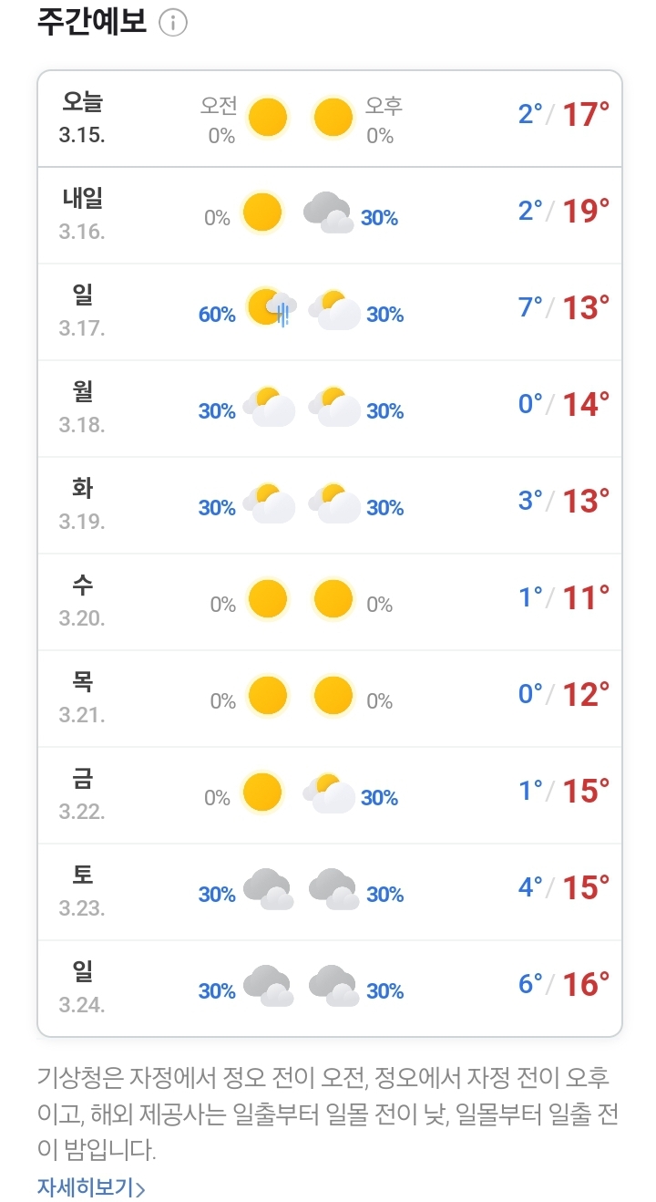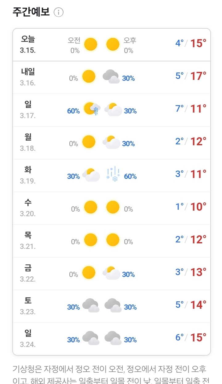 2024.3.15(금)~ 3.24(일) 일기예보 본문