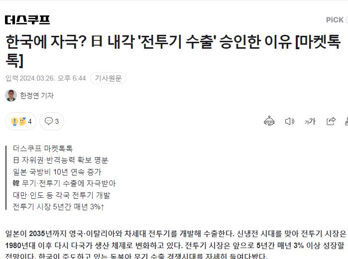 한국에 자극? 日 내각 '전투기 수출' 승인한 이유 [마켓톡톡]