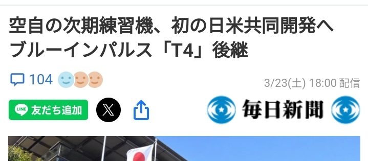 미·일 정부가 항공자위대 전투기 파일럿용 연습기 'T4'의 후계기를 공동 개발함으로써 조정하고 있는 것으로 나타났다. 기시다 후미오 총리가 국빈 대우로 방미해, 4월 10일에 워싱턴에서 예정되고 있는 바이덴 대통령과의 정상회담에서 합의해 성과 문서에 명기하는 것을 목표로 하고 있다. 연습기3의 미일 공동 개발은 처음. 생산비용 절감과 더불어 자위대와 미군에서 훈련 단계부터 공통 기체를 사용하여 연계를 강화할 목적이 있다. 여러 미일 관계 소식통이 23일 밝혔다.