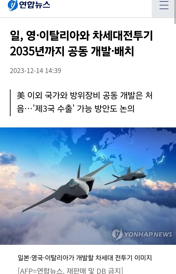 일본이 2035년까지 영국·이탈리아와 차세대 전투기를 개발해 수출한다. 신냉전 시대를 맞아 전투기 시장은 1980년대 이후 다시 다국가 생산 체제로 변화하고 있다. 전투기 시장은 앞으로 5년간 매