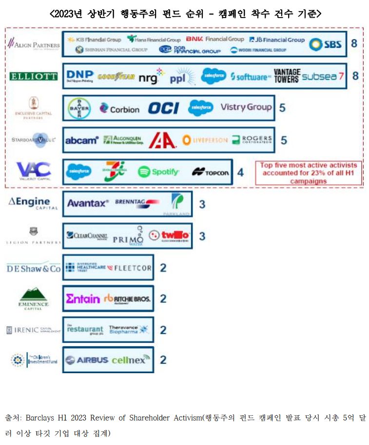 보고서는 “글로벌 행동주의 펀드의 공격이 한국, 일본 등 아시아권에 집중되고 있다”며 “행동주의 대응에 익숙하지 않은 아시아 기업이 손쉬운 먹잇감이 되고 있다”고 해석했다.