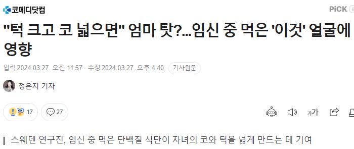 "턱 크고 코 넓으면" 엄마 탓?...임신 중 먹은 '이것' 얼굴에 영향