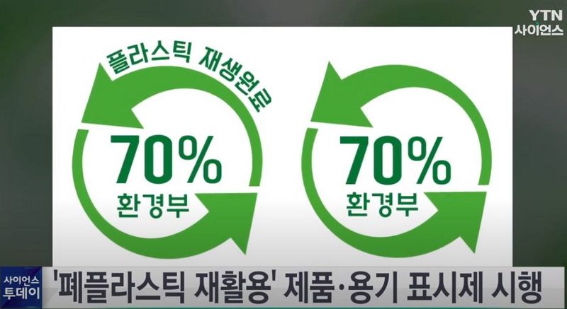 "폐플라스틱 재생원료 사용 표시제란 국내에서 발생한 폐플라스틱으로 생산된 재생원료를 일정비율 이상 사용한 상품의 제조자가 그 비율을 제품에 표시할 수 있게 한 제도입니다" - 연합뉴스.