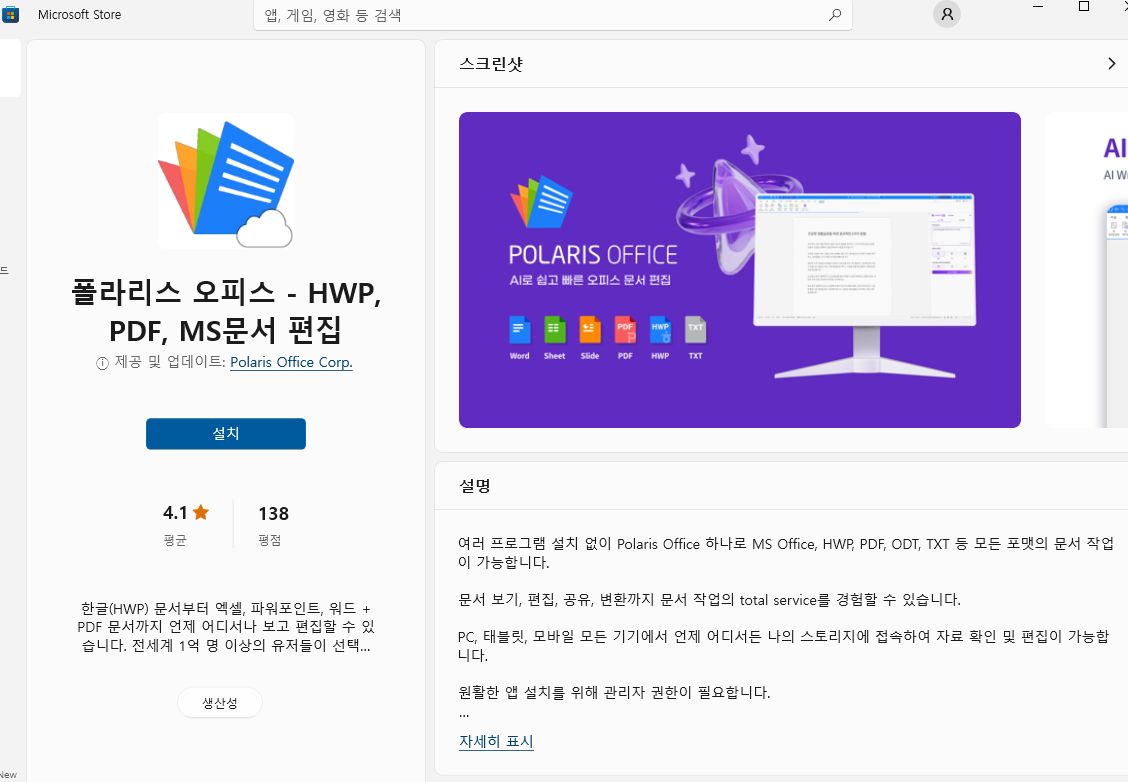 폴라리스 오피스 (PC용) 설치기 본문