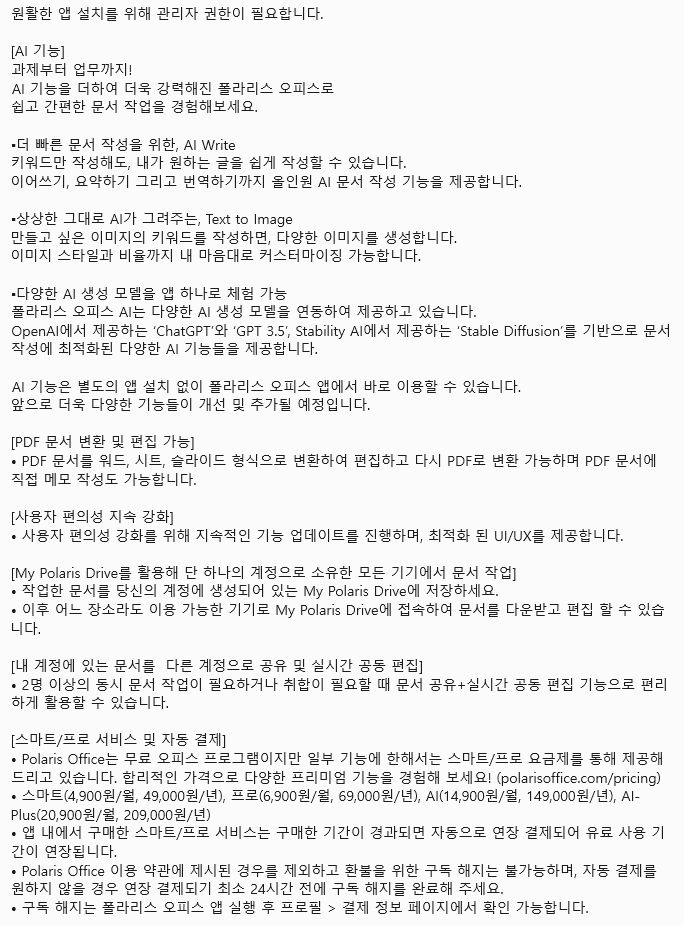 ㅡ 무섭다. 용도에 따라서는 그냥 폴라리스 웹 오피스를 북마크해두고 이용하는 게 편할 수 있겠다. 폴라리스 서버에 업로드해도 되는 파일이라면.