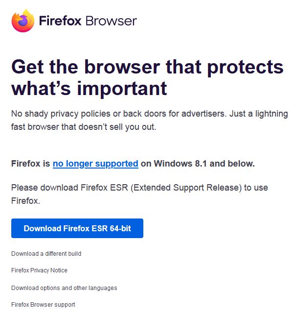 * Firefox ESR 버전은 아직 윈도우7을 지원합니다.