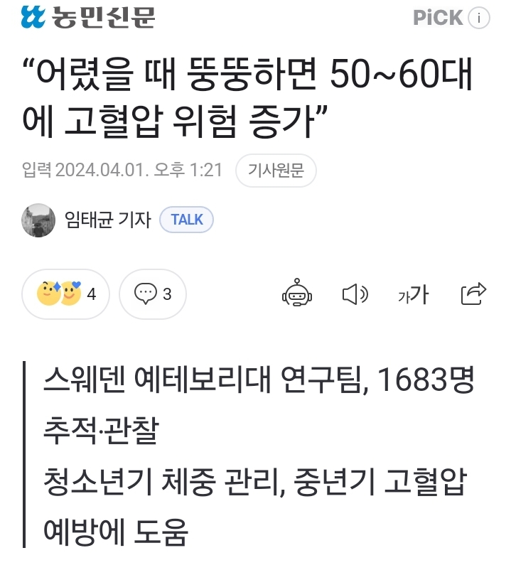 사람이라면 청소년기에 뚱뚱하면 안 된다: 이미 고혈압이거나 나이먹어 고혈압된다 본문