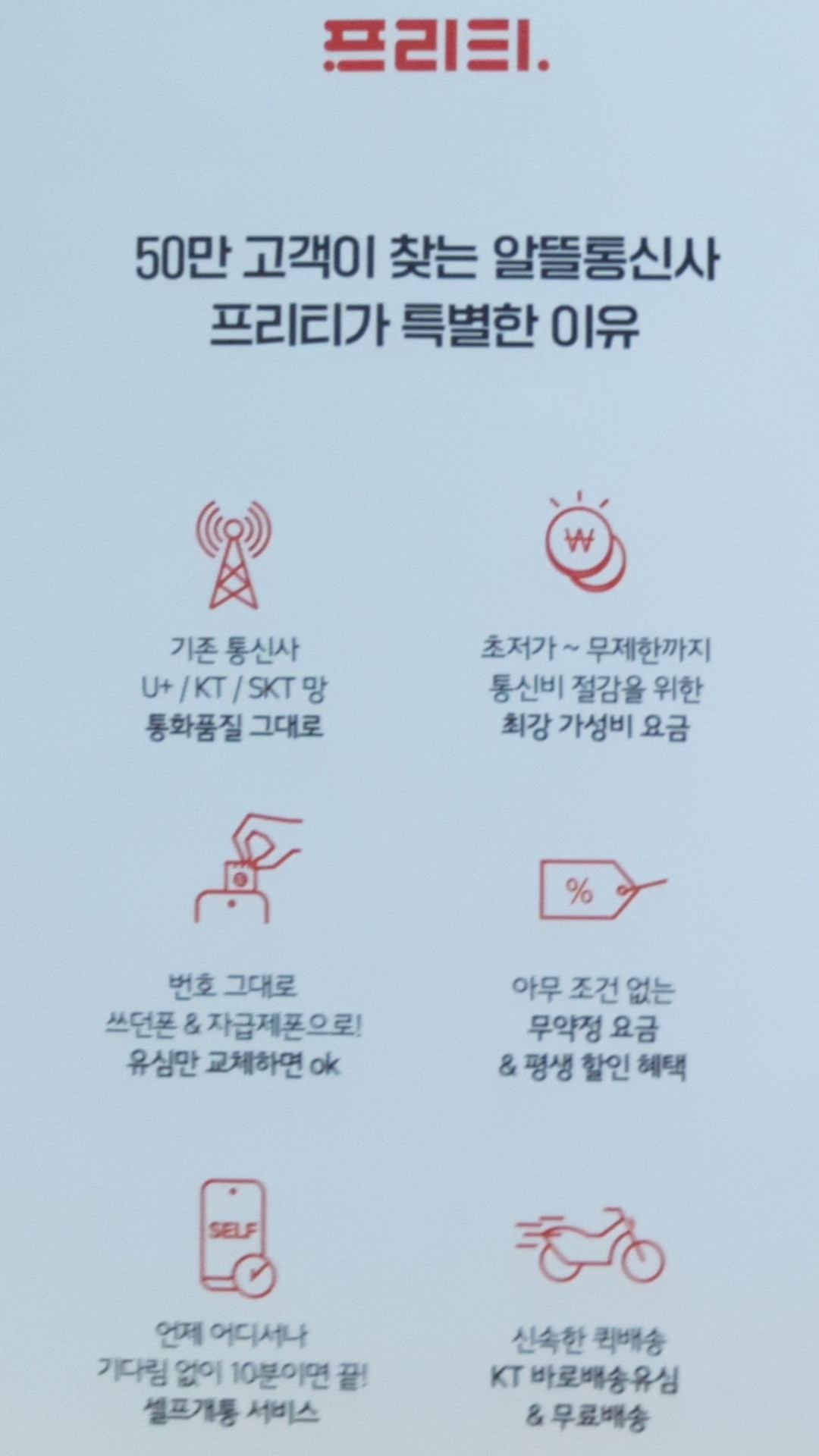 프리텔레콤 사이트에서 링크를 따라갈 수도 있는데, 제가 아는 판매처는 네이버 스마트스토어와 11번가의 공식몰입니다. 일반유심 2200원 무료배송. 평일 오전 중에 결제하면 보통 다음 날 오후에 옵니다.