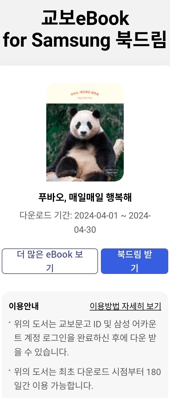 - 지금도 그런지는 안 찾아봤는데, 갤럭시단말기 사용자가 아닌 사람은 월말에 며칠동안 교보문고 이북뷰어를 통해 대여책으로 볼 수 있다는 글을 본 적 있습니다. 저는 그쪽은 필요없어서 이용해보지 않아 모르겠네요. [본문으로]