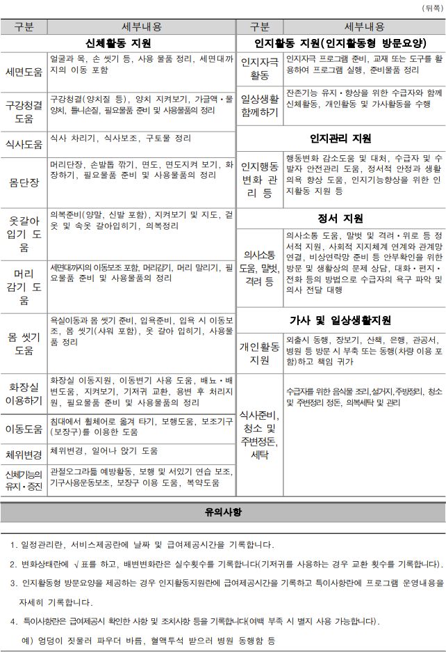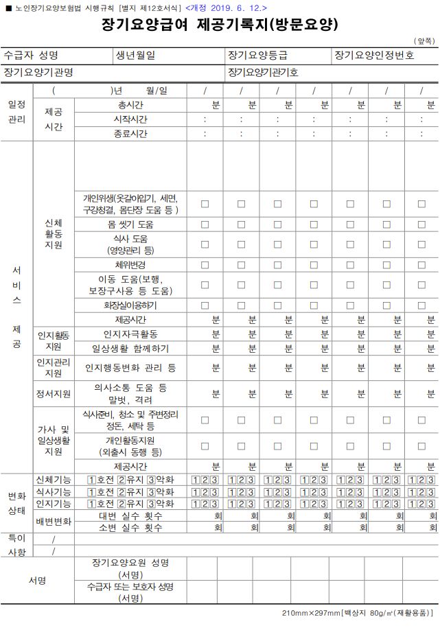 장기요양급여 제공기록지