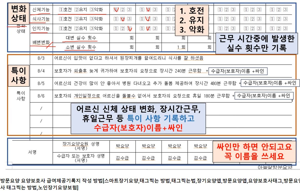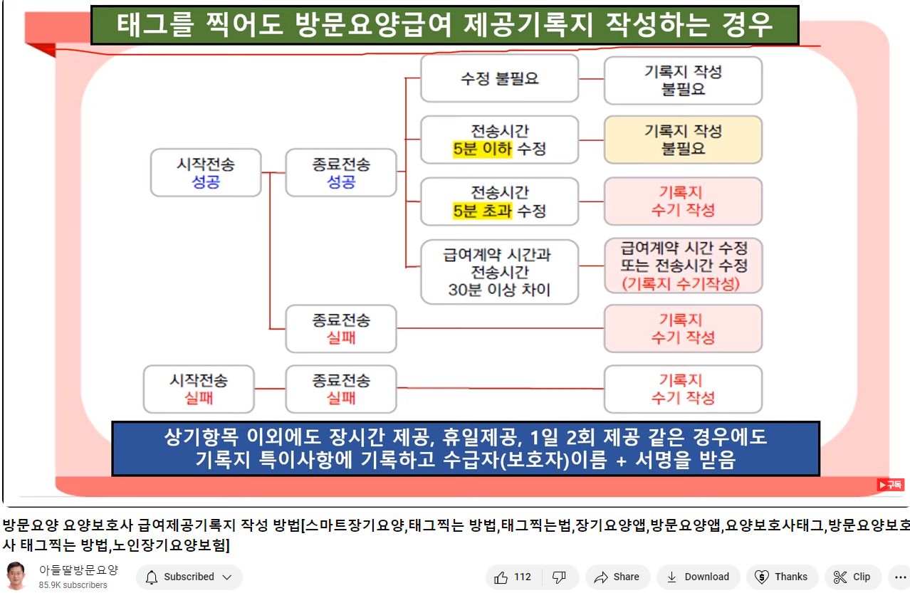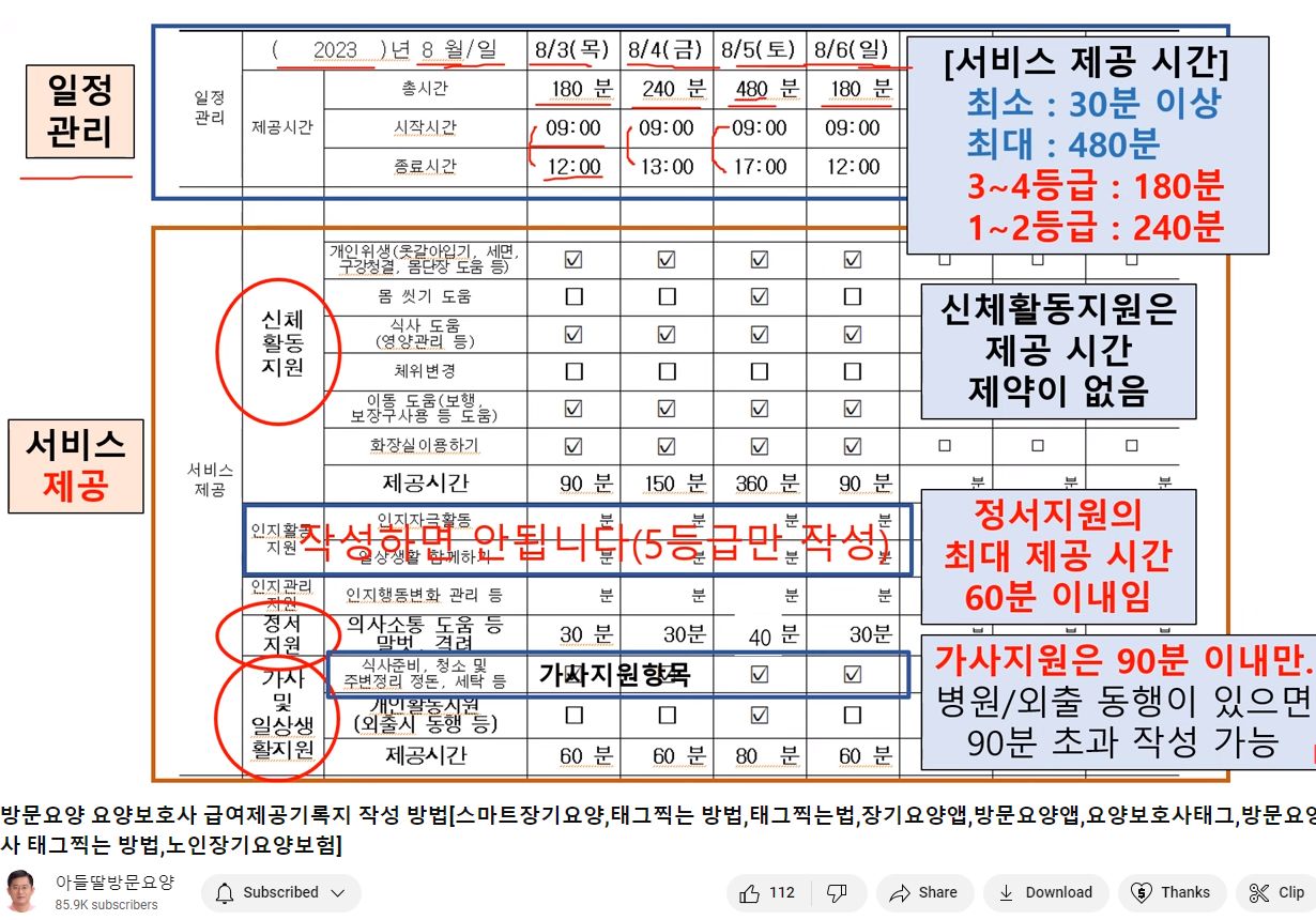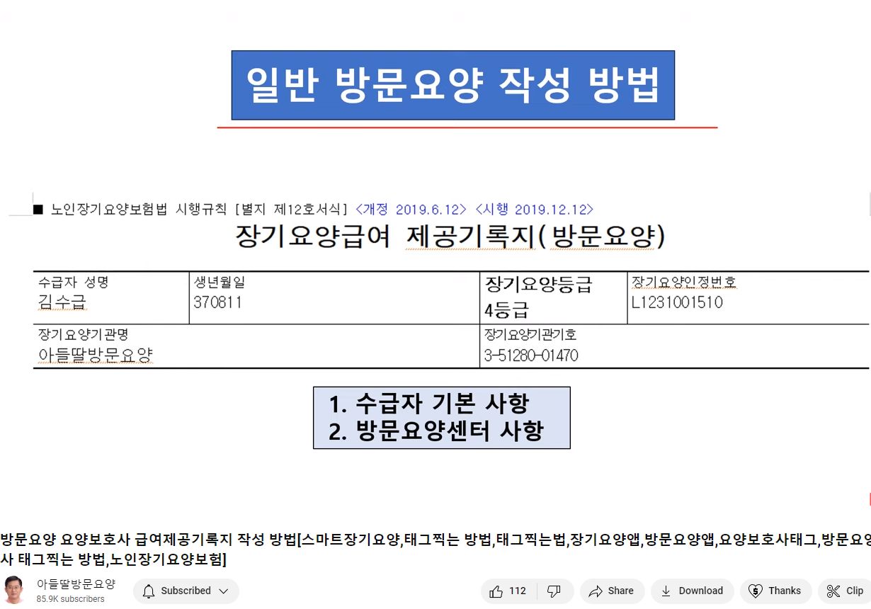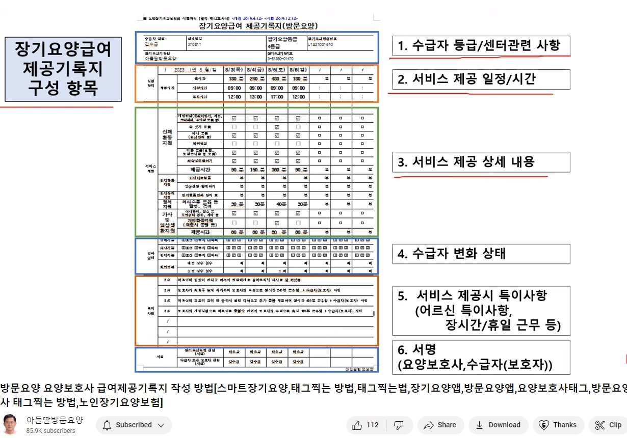 장기요양급여 제공기록지(방문요양)에 관한 영상 본문