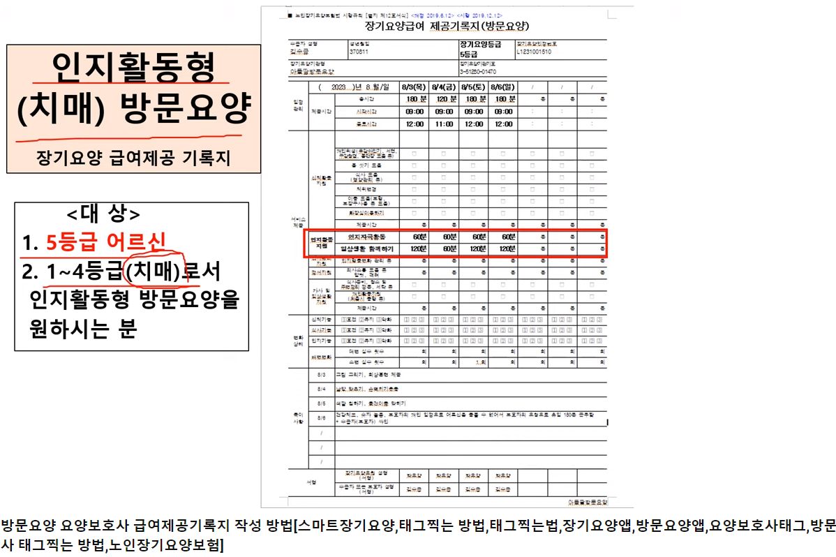 방문요양 요양보호사 급여제공기록지 작성 방법[스마트장기요양,태그찍는 방법,태그찍는법,장기요양앱,방문요양앱,요양보호사태그,방문요양보호사 태그찍는 방법,노인장기요양보험] - 아들딸방문요양, 2023.8.