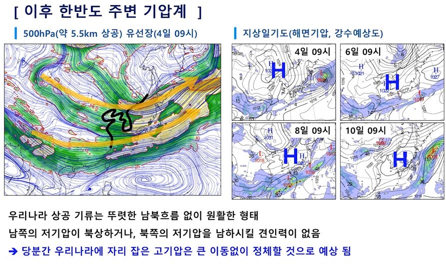 5일 새벽까지 일부지방 비. 이후 기압계는 고기압.