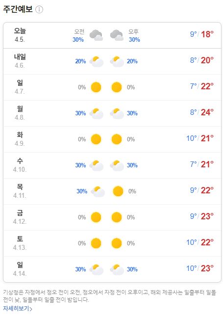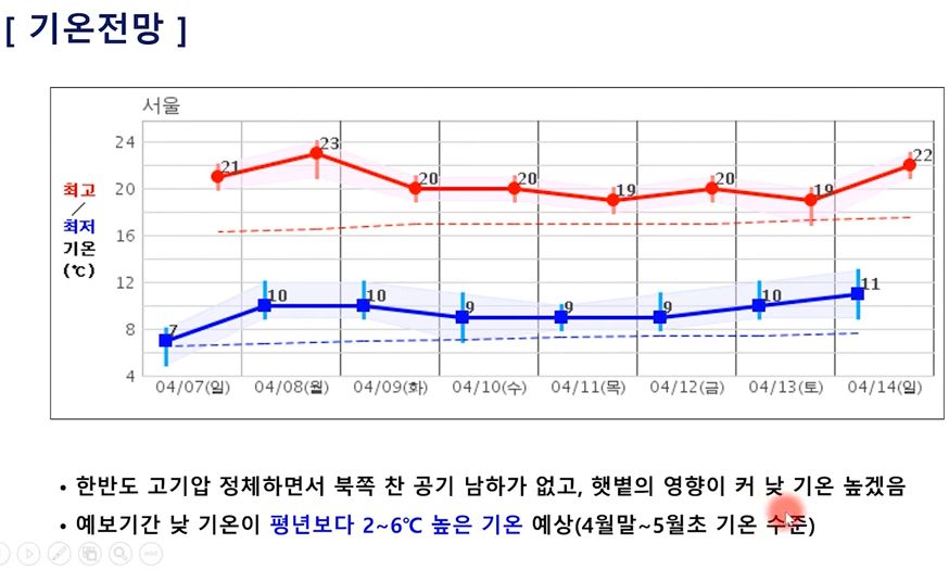 기상청 주간예보: 4월 초인데 5월 기온! 벚꽃 절정? 갑작스런 강한 비 주의