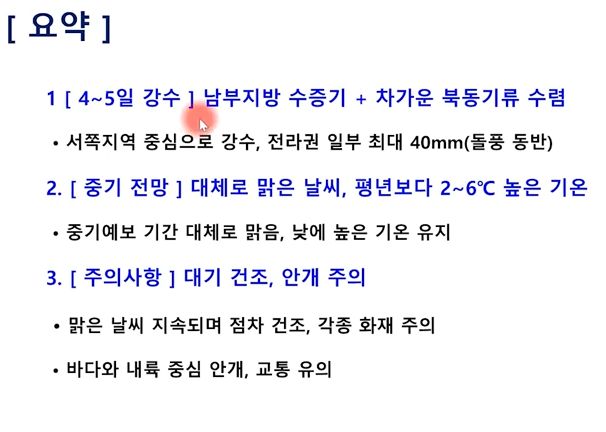 2024.4.5(금)~4.14(일) 일기예보: 건조한 날씨 본문