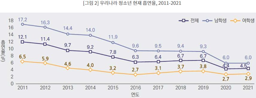 질병관리청, 흡연폐해 최신자료집① 흡연율 변화추이와 흡연시작 결정요인