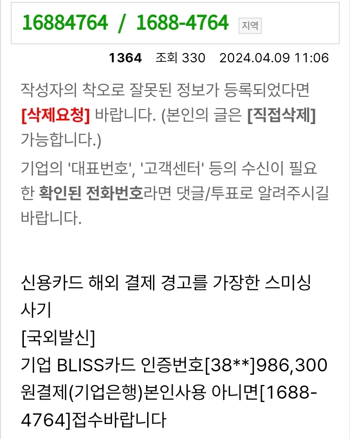 | KB카드 발급알림을 사칭한 금융사기 문자 (0) | 2024.04.17 |