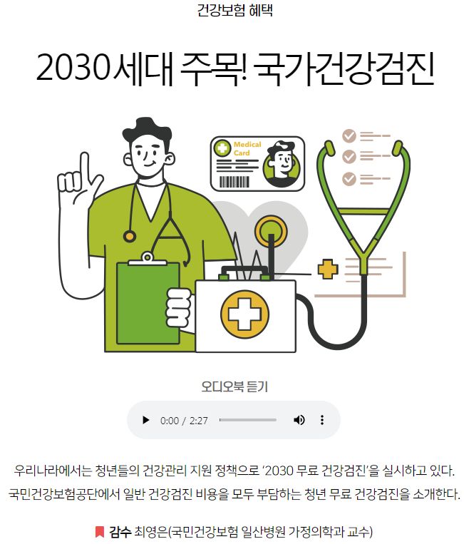 국민건강보험 국가건강검진, 2030무료검진(20~39세)에 대한 글 본문