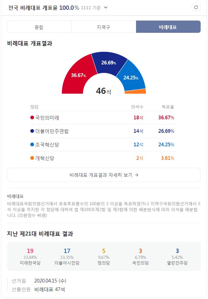 전국 비례대표 46석