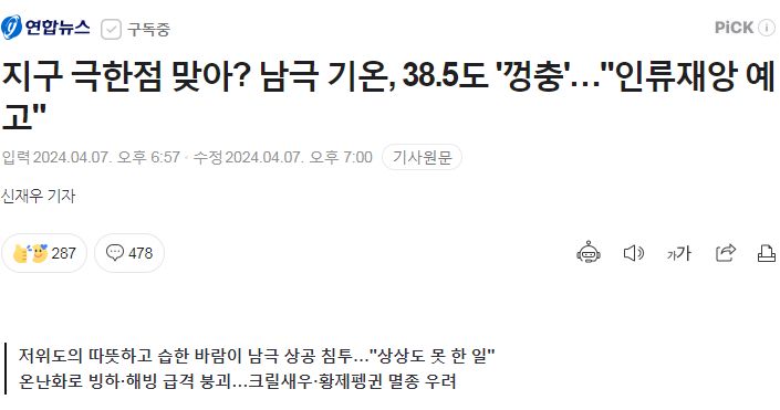올해 남극이 너무 덥다는 뉴스 본문