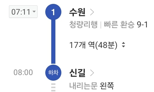 수원-신길은 50분 정도.
