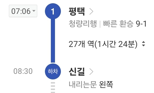 평일 아침 전철, 천안/평택/수원 =》 신길까지 걸리는 시간 본문