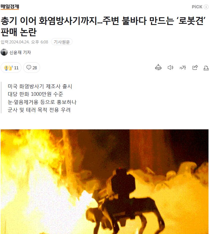 총기 이어 화염방사기까지...주변 불바다 만드는 ‘로봇견’ 판매 논란