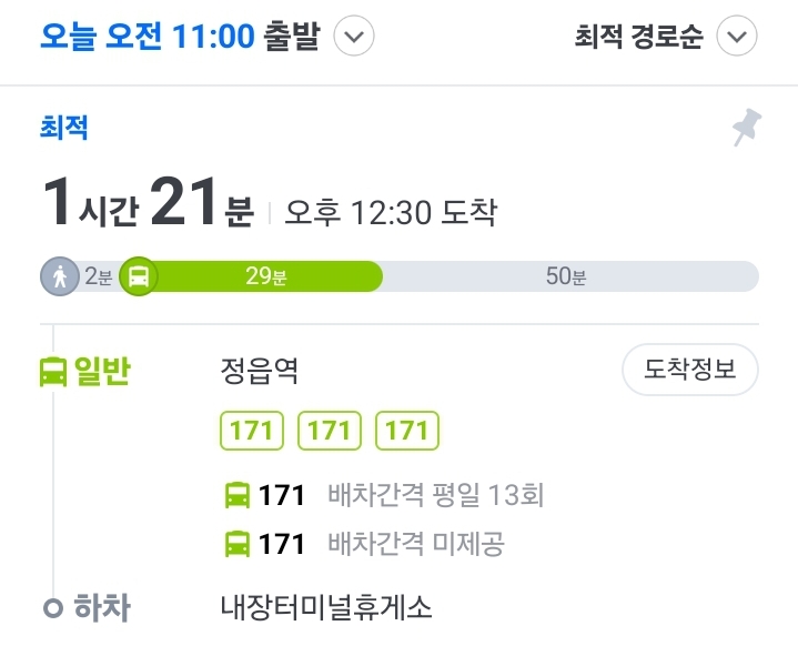 ㅡ 그 버스정거장에서 171번을 타고 내장산입구까지 갑니다(버스카드됩니다).