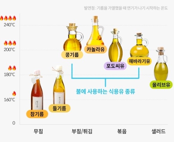 튀김(조리)온도별로 적절한 기름 종류