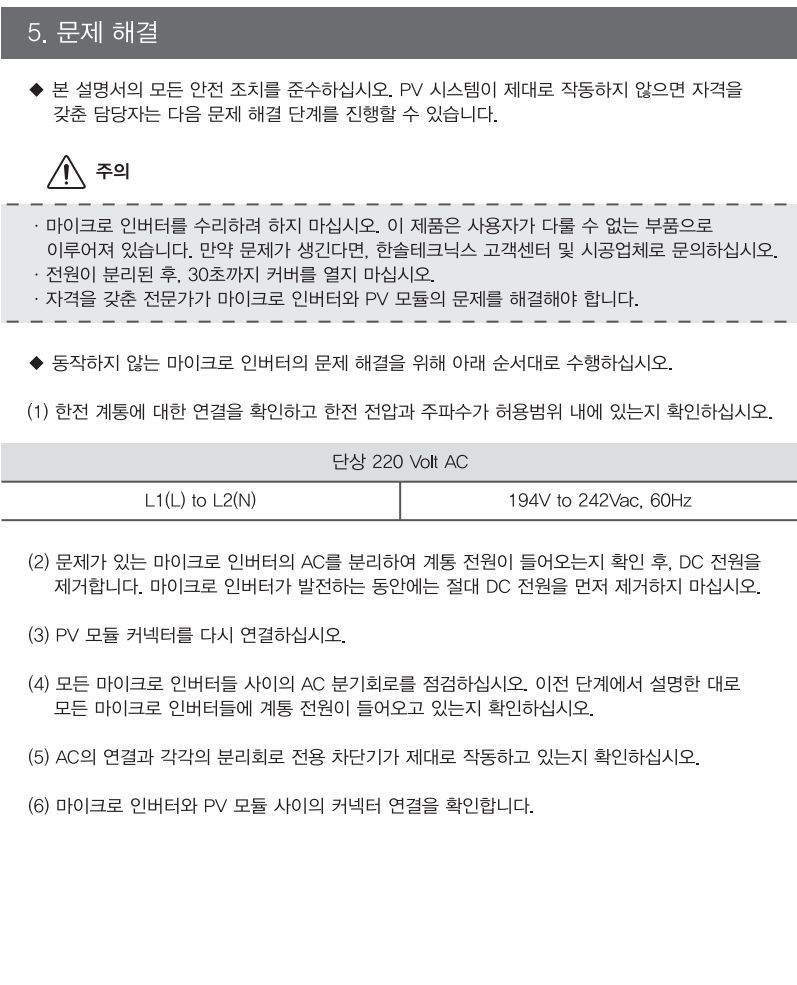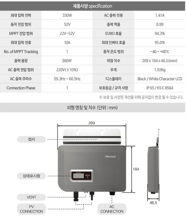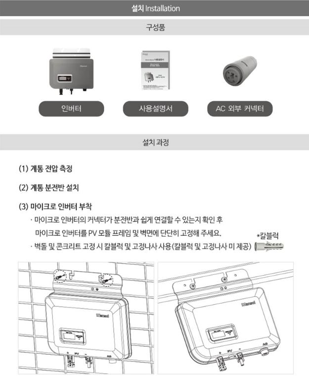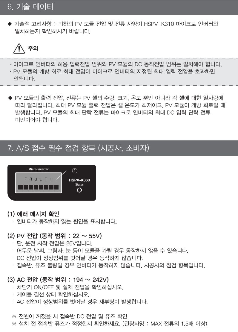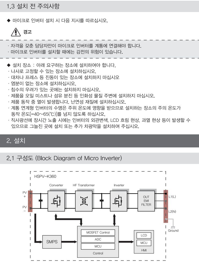 한솔테크닉스 아파트 베란다/주택 미니태양광 마이크로인버터(HSPV-K360) 설명서 본문