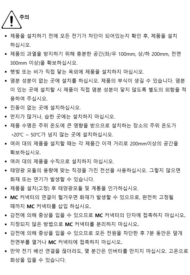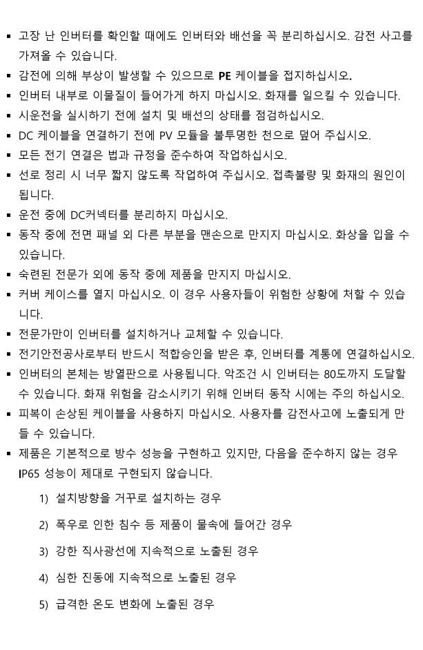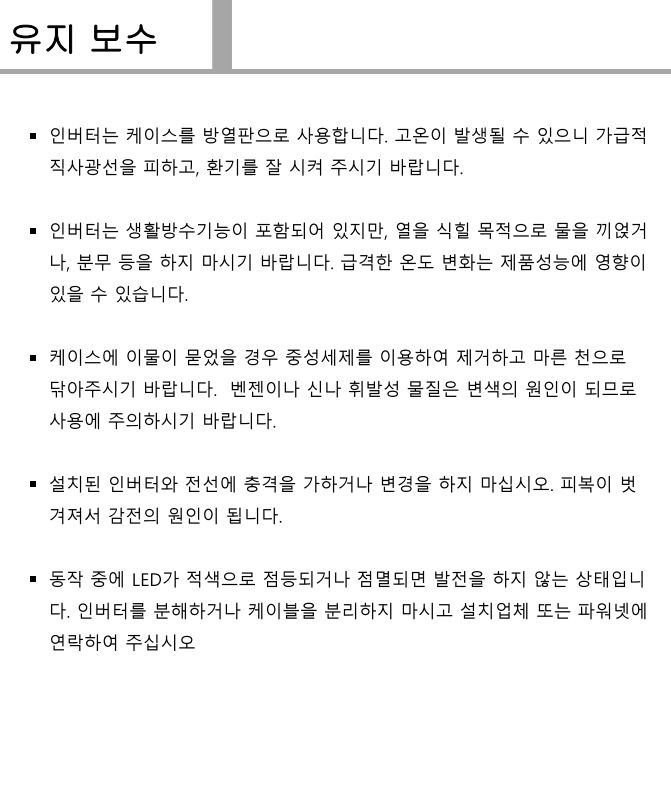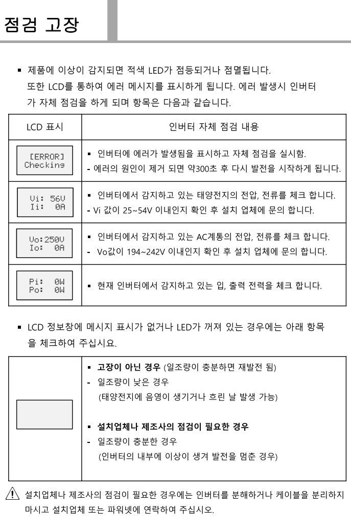 사용시 주의점, 인버터 상태정보창 메시지 읽기, 안 될 때 처치법 등 다양한 정보가 설명서에 있는데 말이죠.