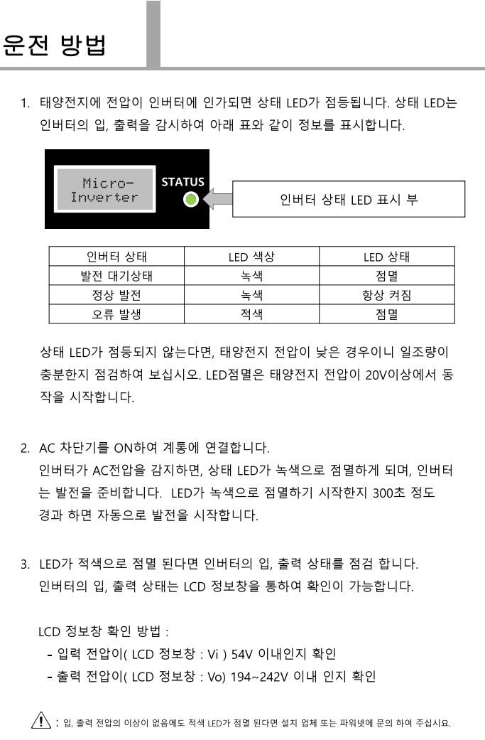 | 한솔테크닉스 아파트 베란다/주택 미니태양광 마이크로인버터(HSPV-K360) 설명서 (0) | 2024.05.04 |