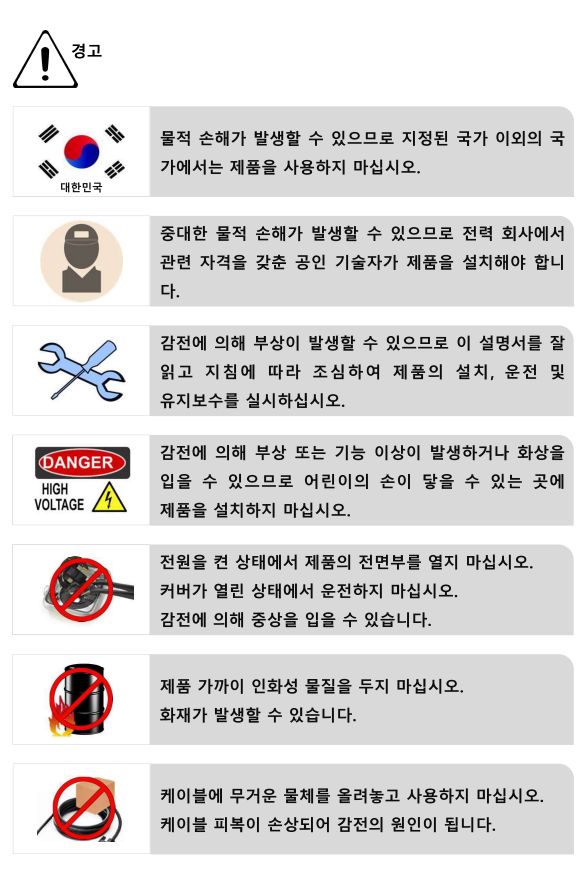 인버터 고장시 또는 수리시 배선을 반드시 분리할 것. 특히 감전사고 방지.