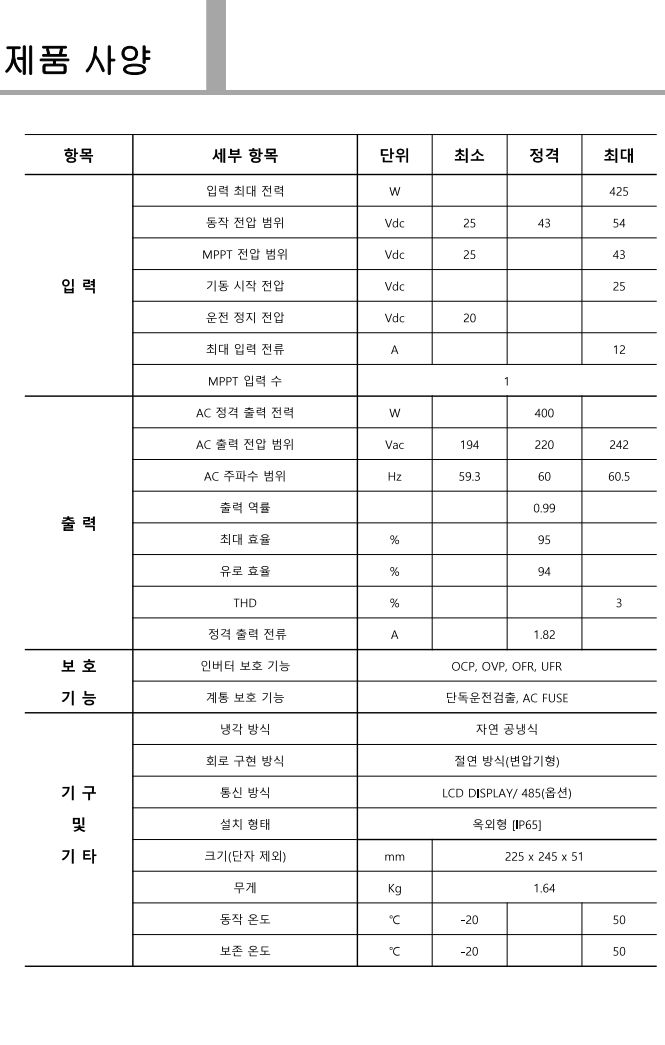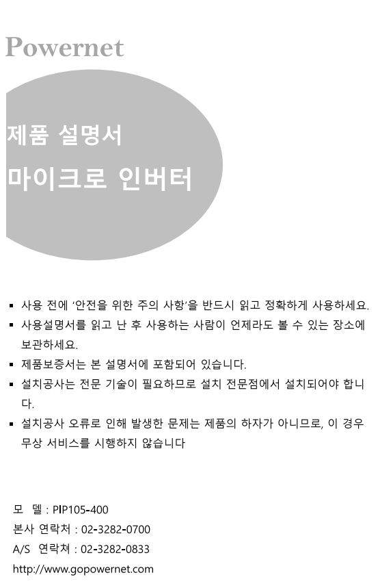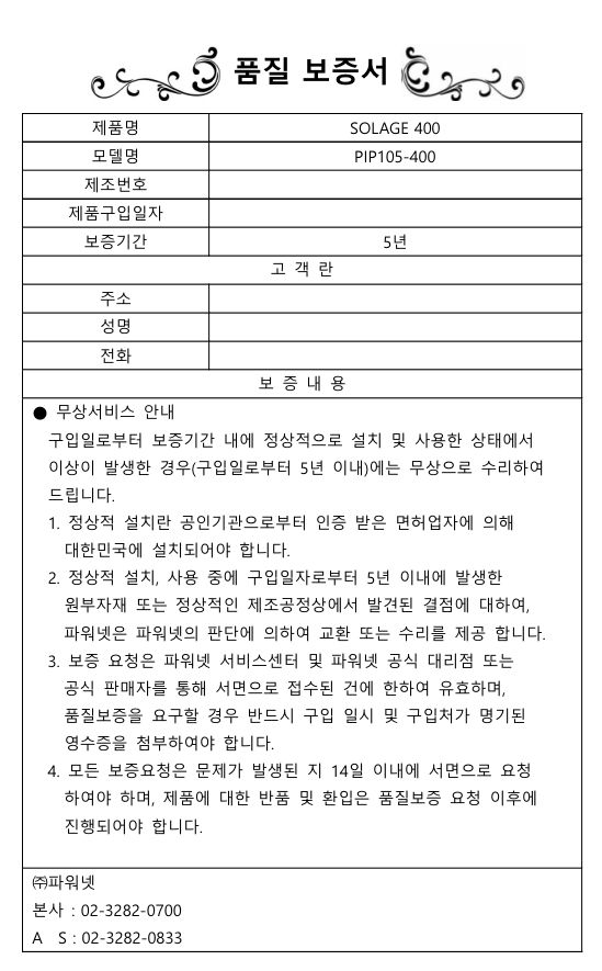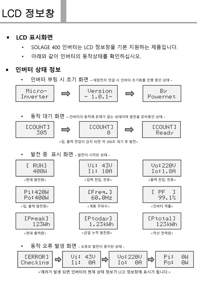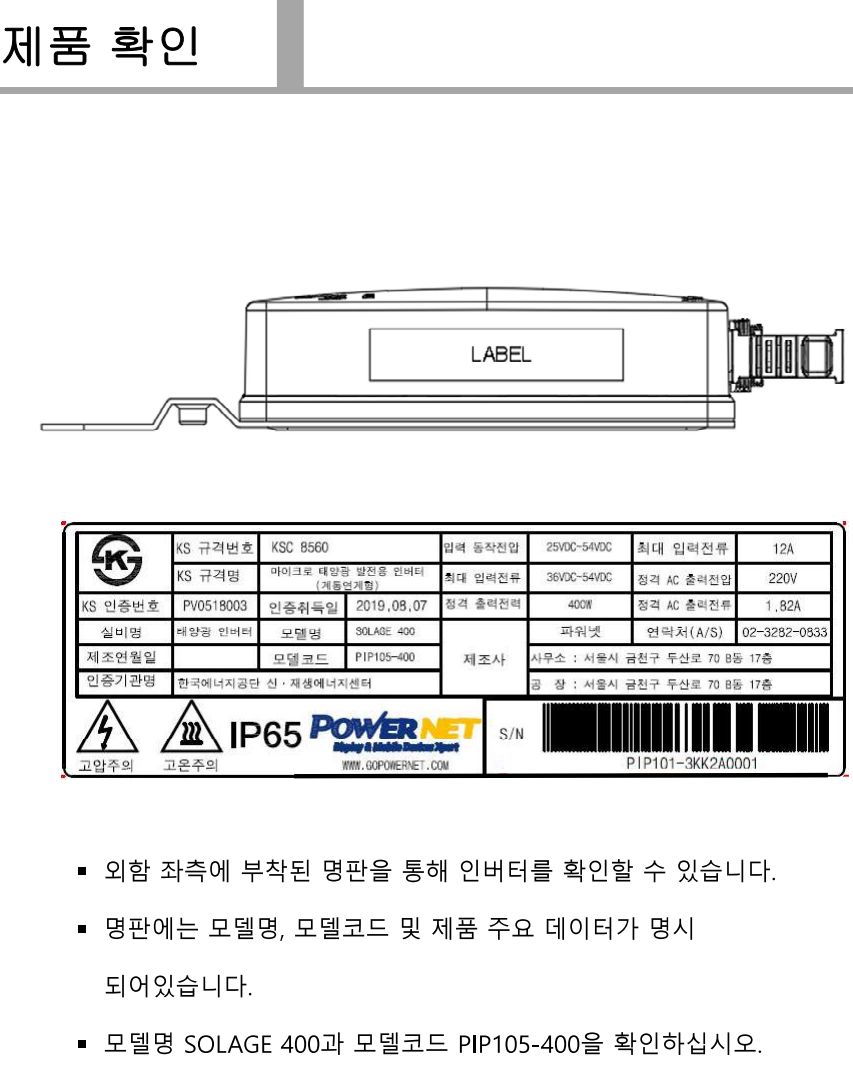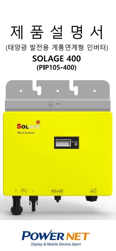 파워넷 아파트 베란다/주택 미니태양광 마이크로인버터(SOLAGE 400; PIP105-400) 설명서 본문
