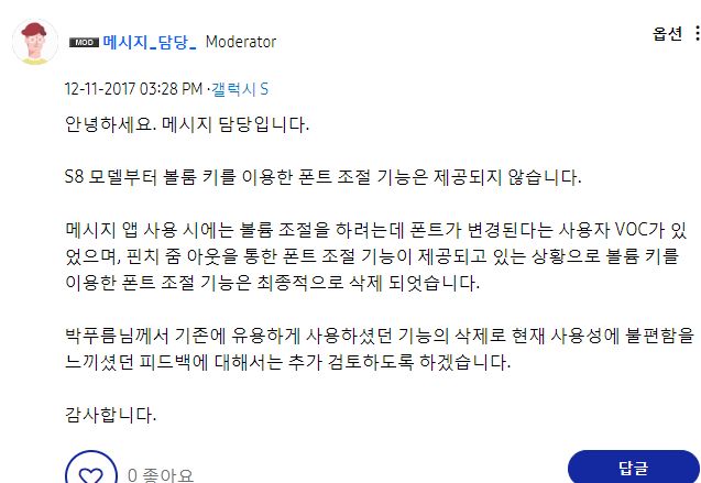 삼성전자 갤럭시 스마트폰: 문자메시지 앱 개선희망점 - 확대축소 본문