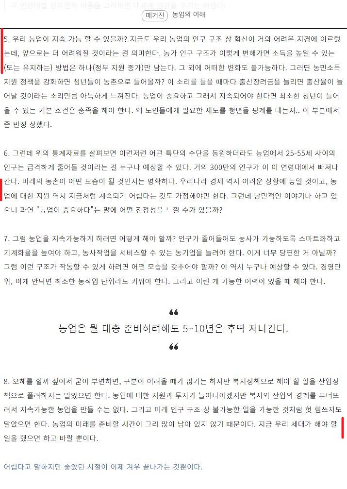 농촌인구에 관한 어떤 글 (링크) 본문