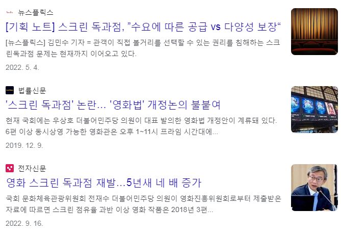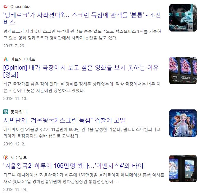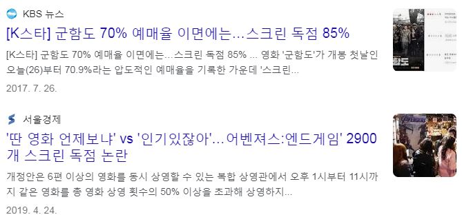 스크린쿼터(상영관 독점문제) 논란기사를 읽고 단상 본문