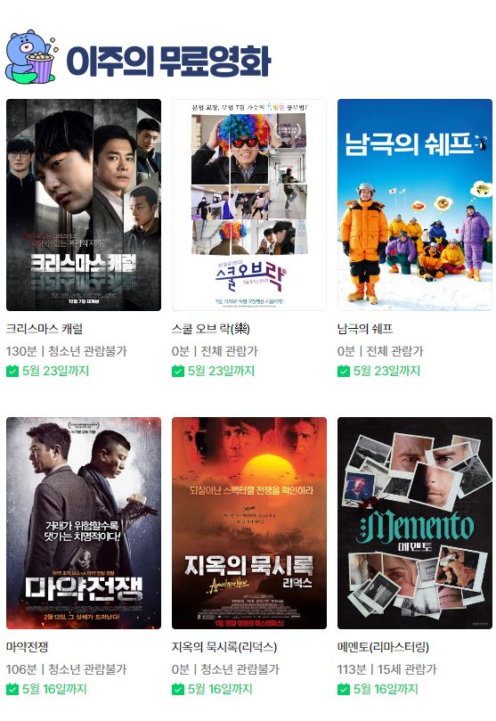 (네이버시리즈온 무료영화) 크리스마스 캐럴, 스쿨 오브 락, 남극의 셰프, 나는 공무원이다, 도쿄 소나타, 말할 수 없는 비밀(리마스터링) 등 본문