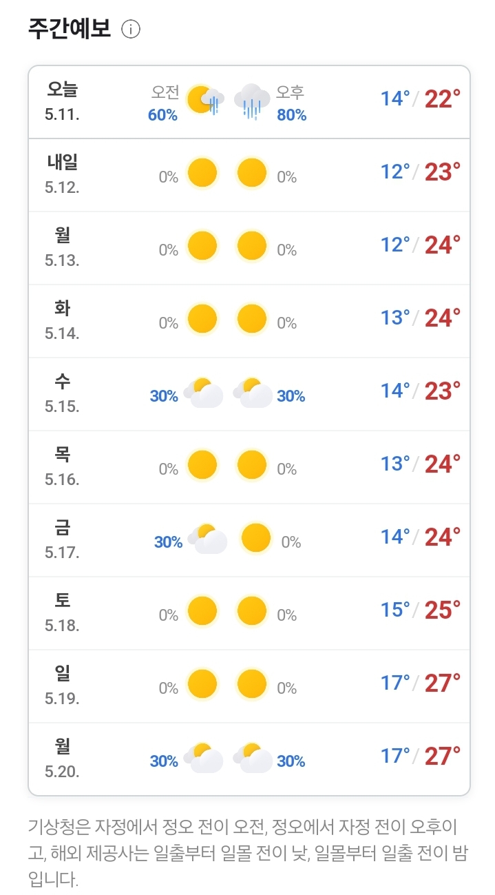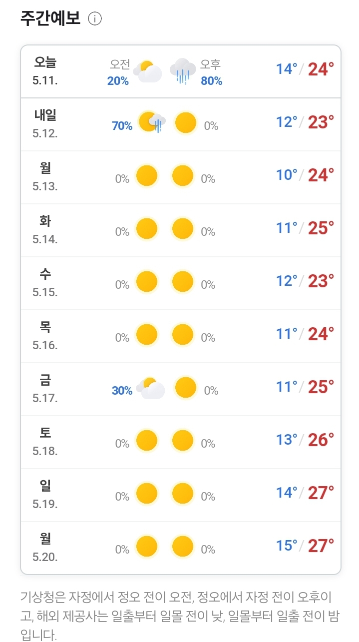 2024.5.11. 토요일 오후부터 전국 비 본문
