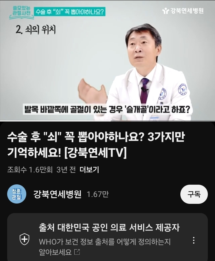수술때 박은 쇠를 뽑는 선택문제 (유튜브) 본문
