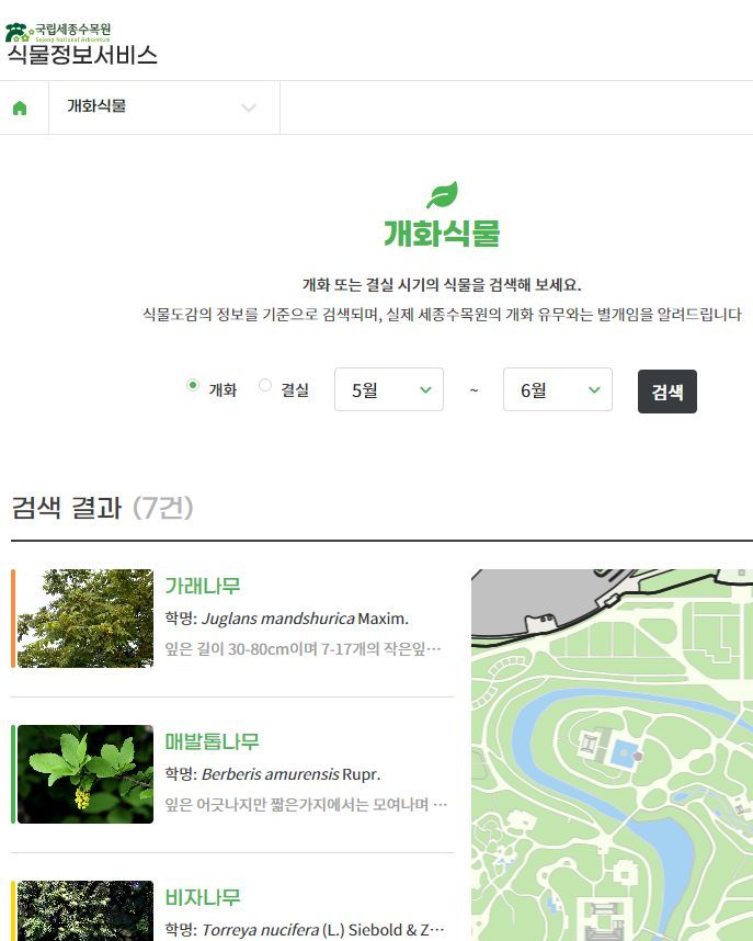 국립세종수목원 식물정보서비스: 이달의 개화식물 본문