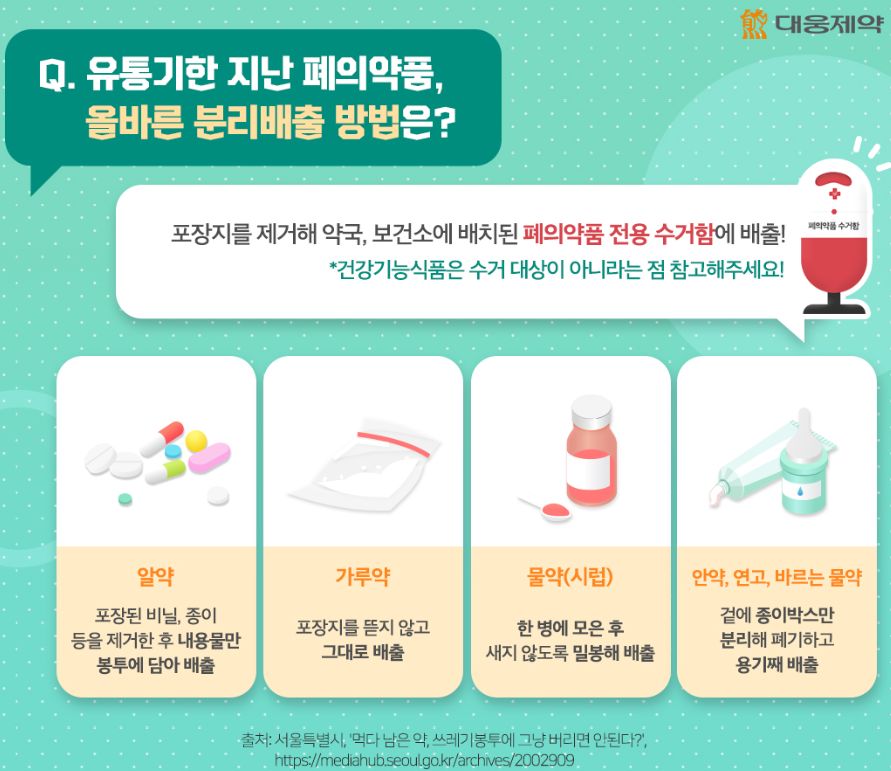 ㅡ 유효기한이 지난 약은 반드시 버릴 것. 가까운 약국이나 보건소의 폐의약품 수거함에 버리기.