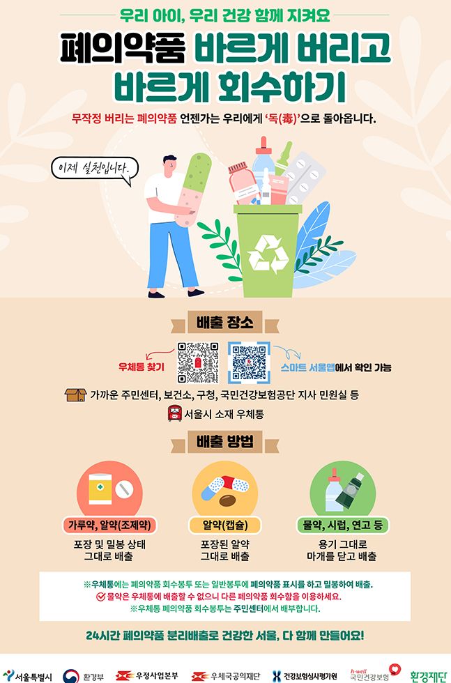 서울시는 지난해부터 동주민센터와 구청 등에 폐의약품 수거함을 설치·운영하고 있다. 체육센터나 자치회관, 복지관 등에도 폐의약품 수거함을 운영하고 있는데 가까운 폐의약품 수거함은 '스마트서울맵'을 통해 손쉽게 찾을 수 있다.