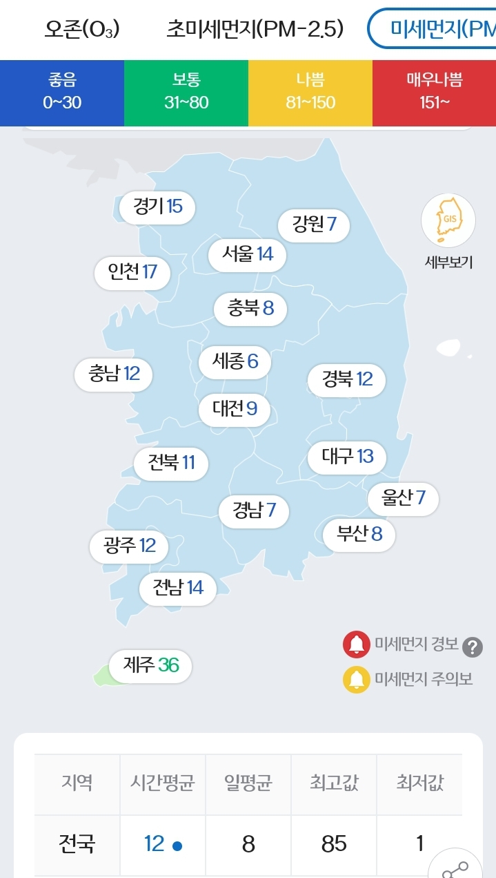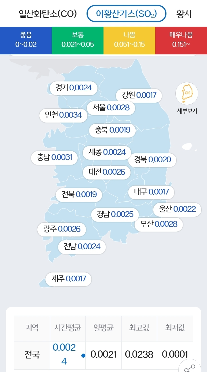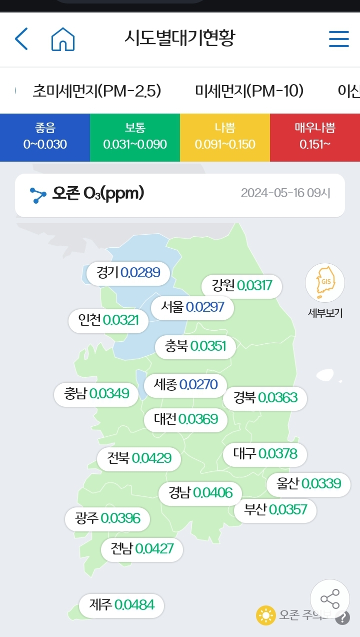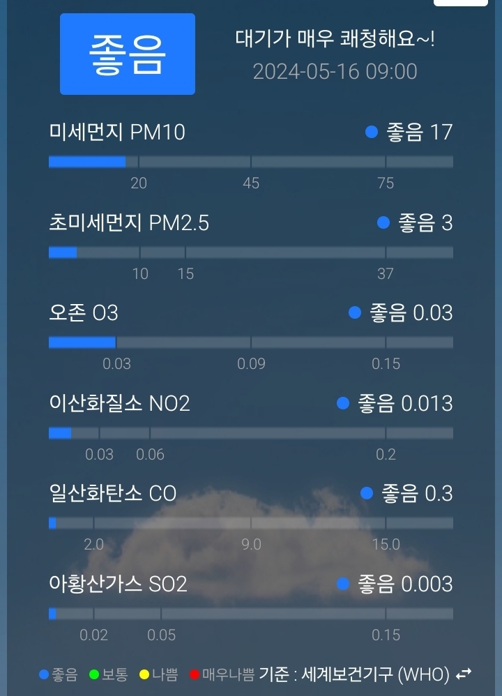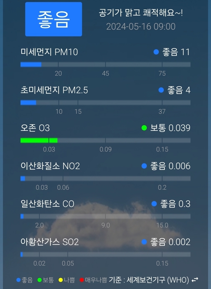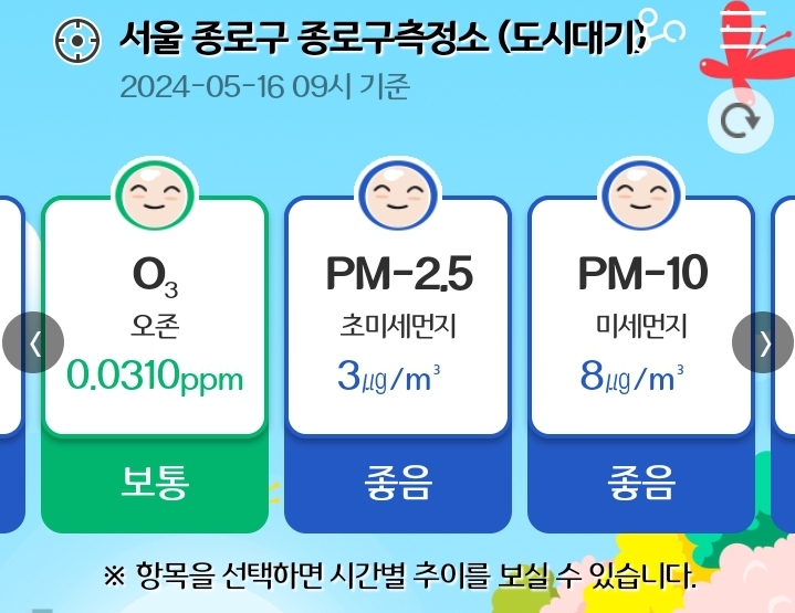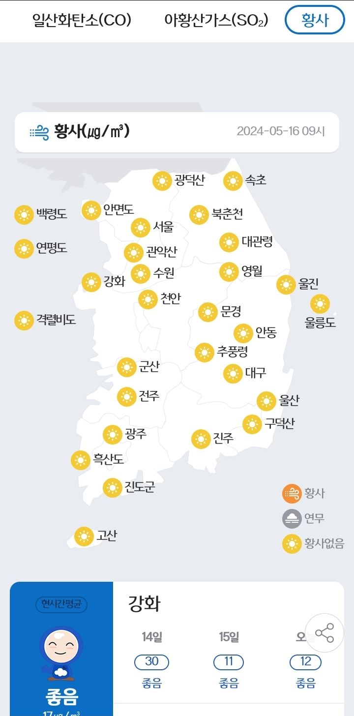 * 에어코리아는 황사와 PM10을 따로 계산하는군요.