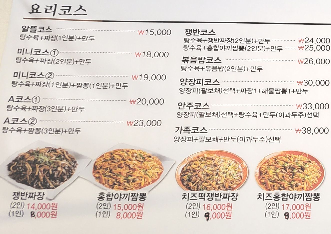 3인 이상이면 A코드1 (탕수육+짜장3+만두) 과 A코스2 (탕수육+짬뽕3+만두) 에도 탕수육이 들어갑니다.